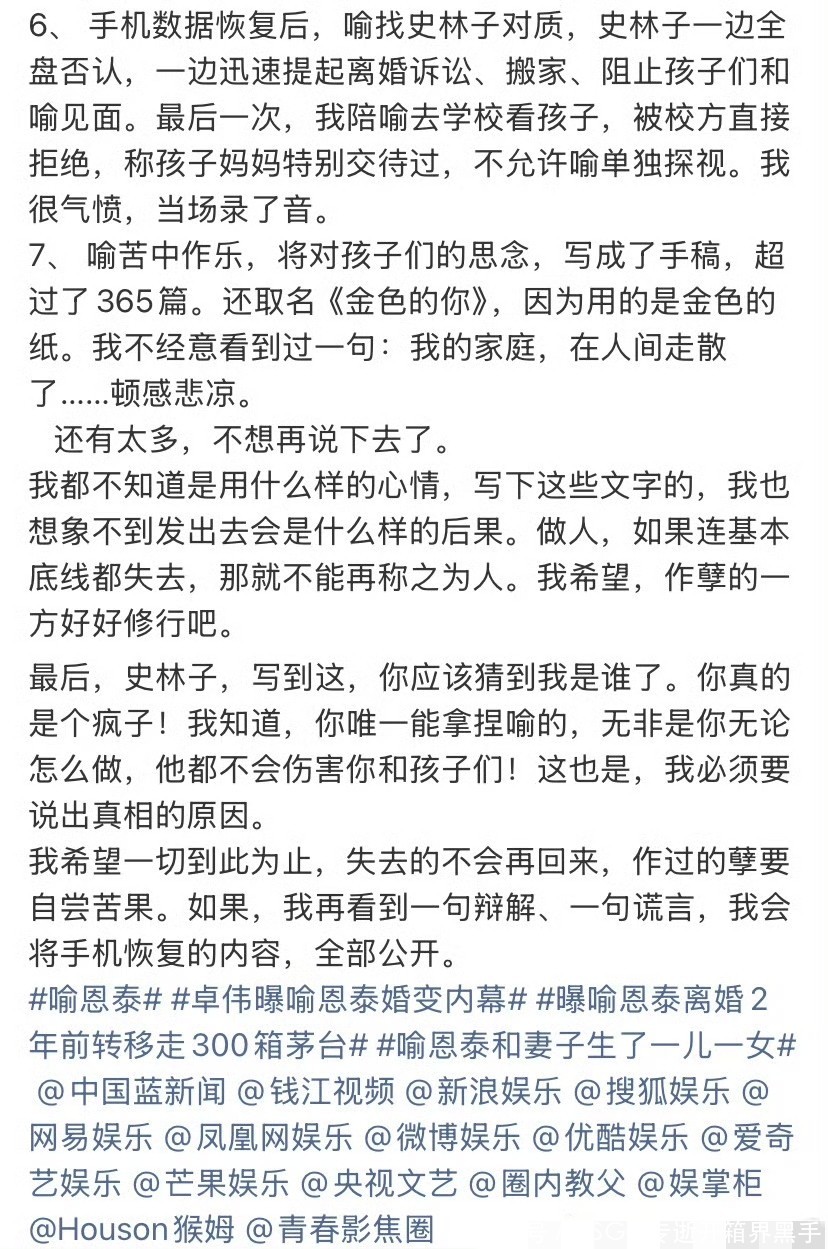 然而最近两天,他的婚姻成了热议话题,网上曝出了他与妻子已经到了对簿公堂的程度,并且说他已经离开家有三年的时间,不给孩子抚养费,同时还把自己家里的三百箱茅台搬走了。两人又没车没房,出现了两边没有任何共同财产。